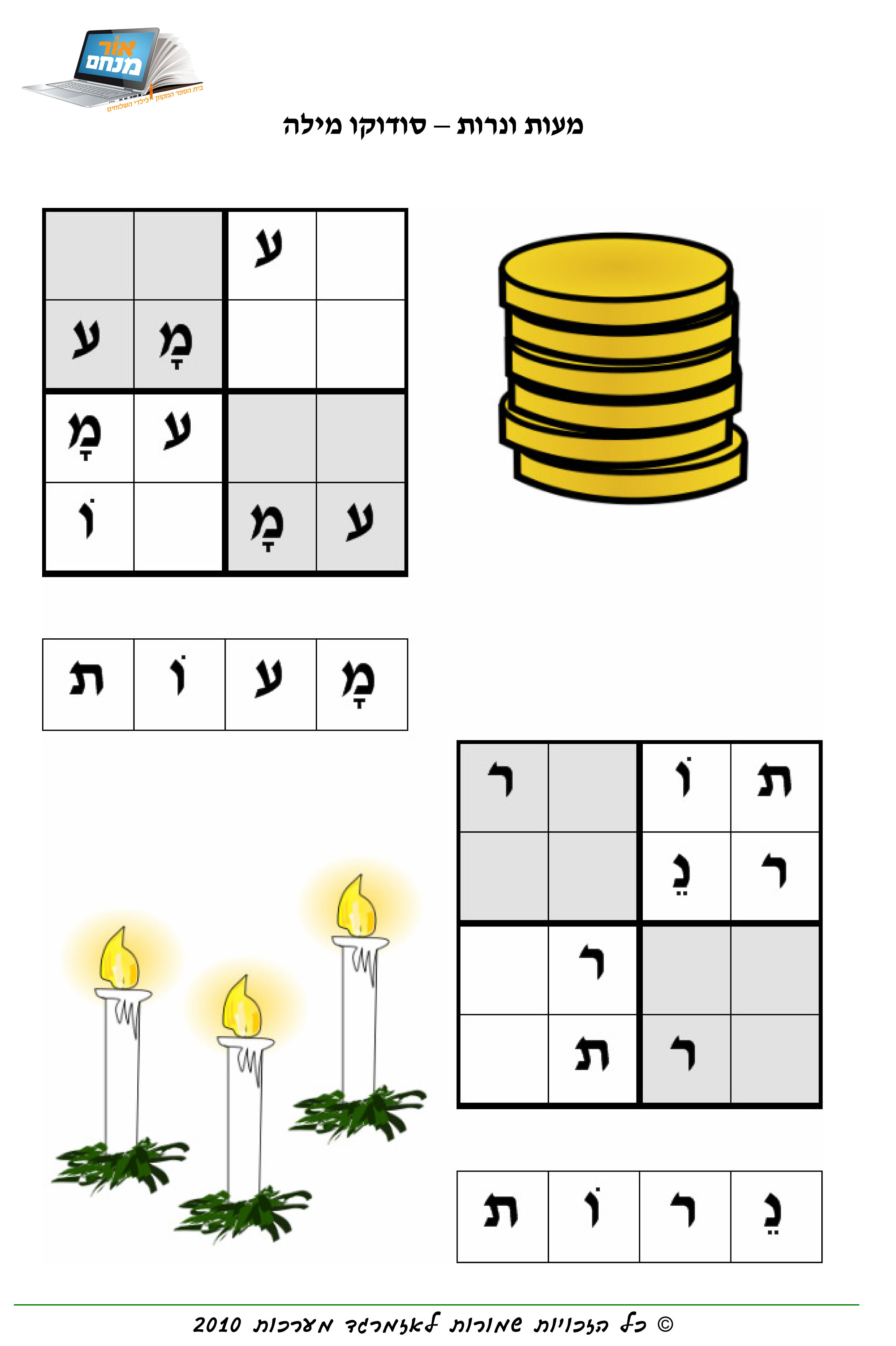 מצו"ב קבצים שונים לפעילות חנוכה – חלקם עשינו עם הילדים ביום הפעילות בבית הספר.