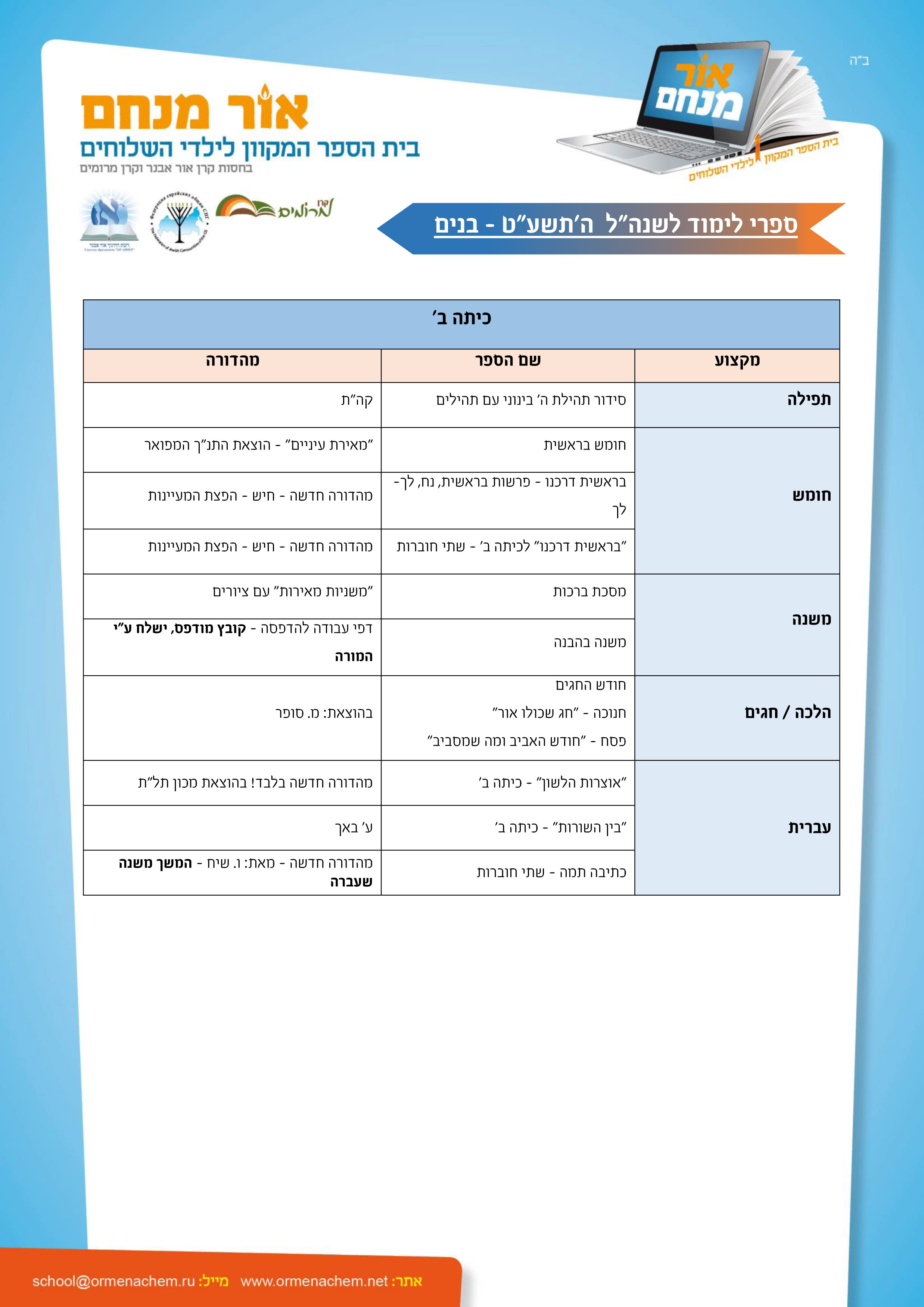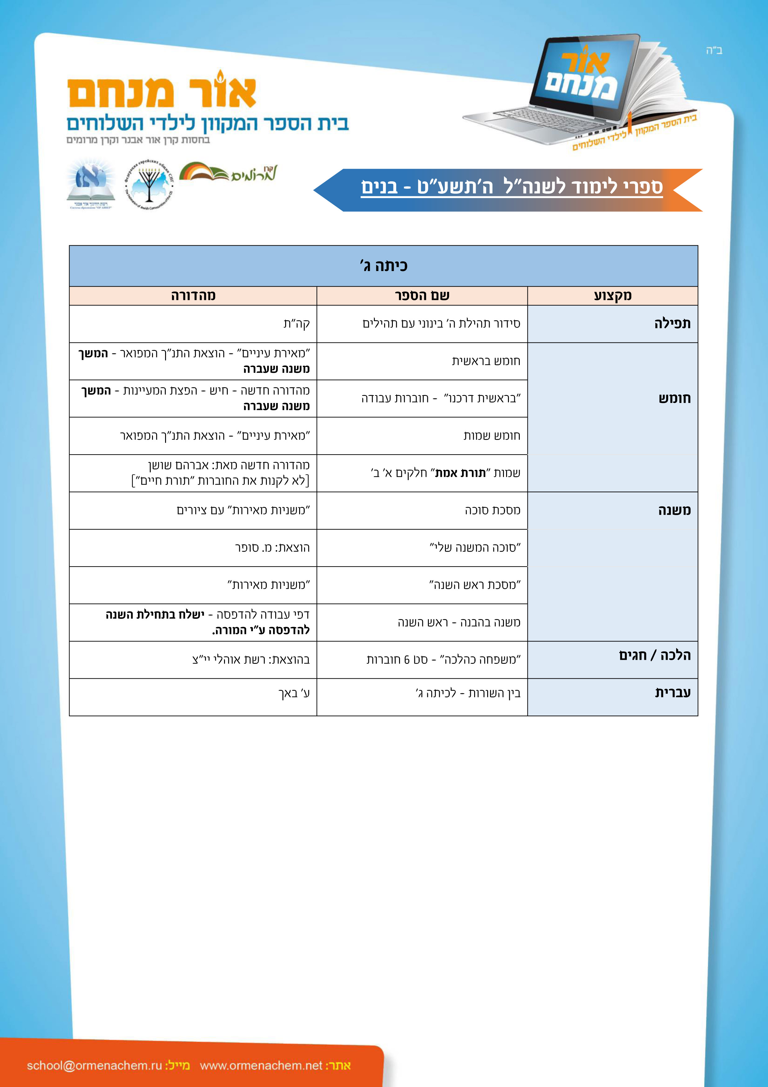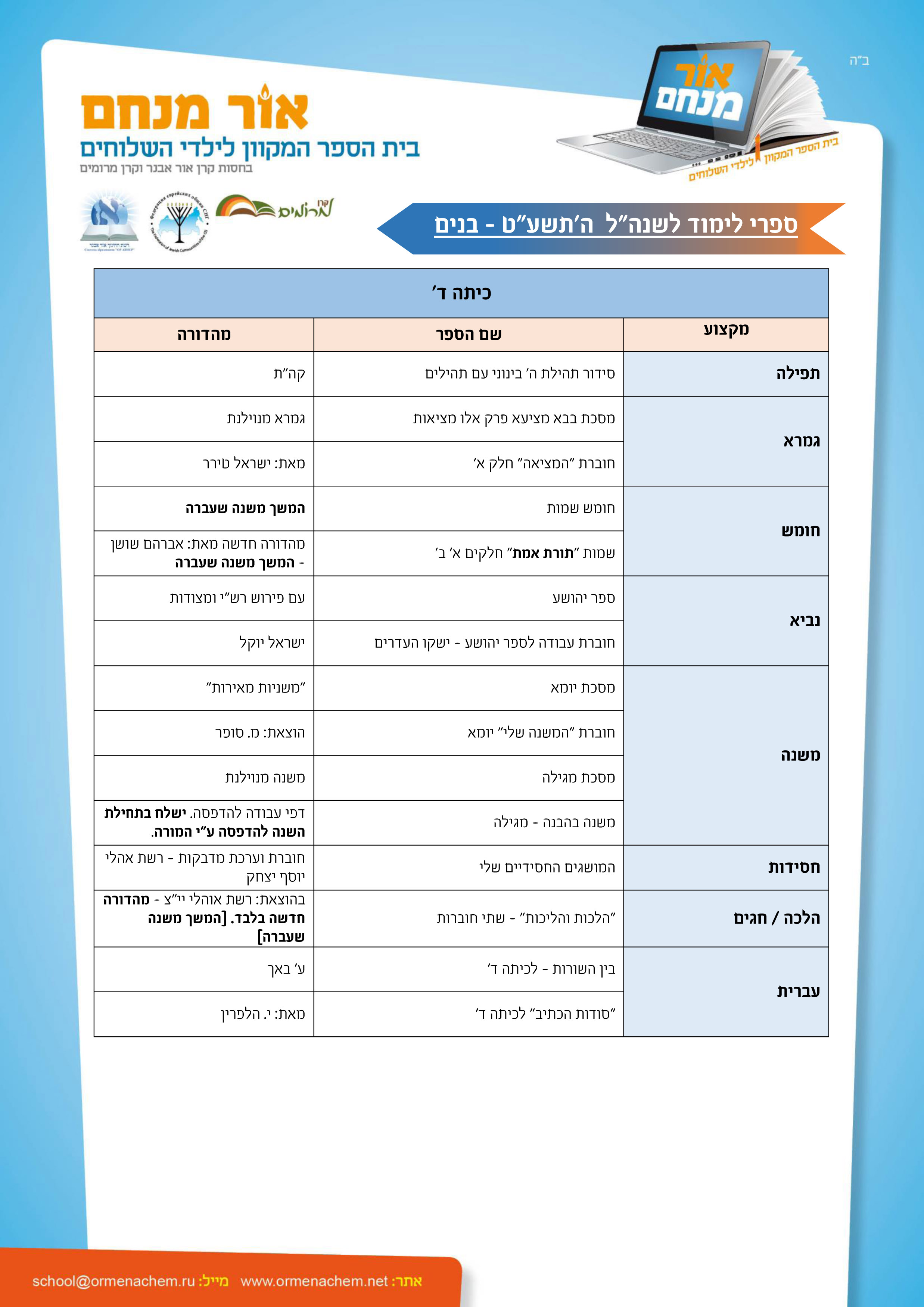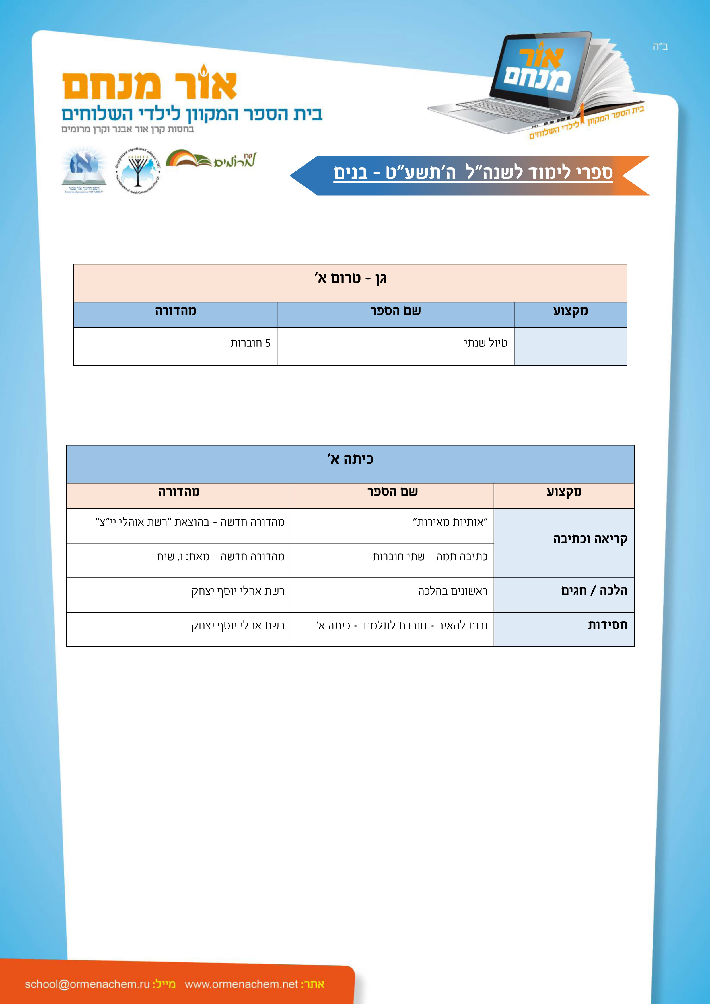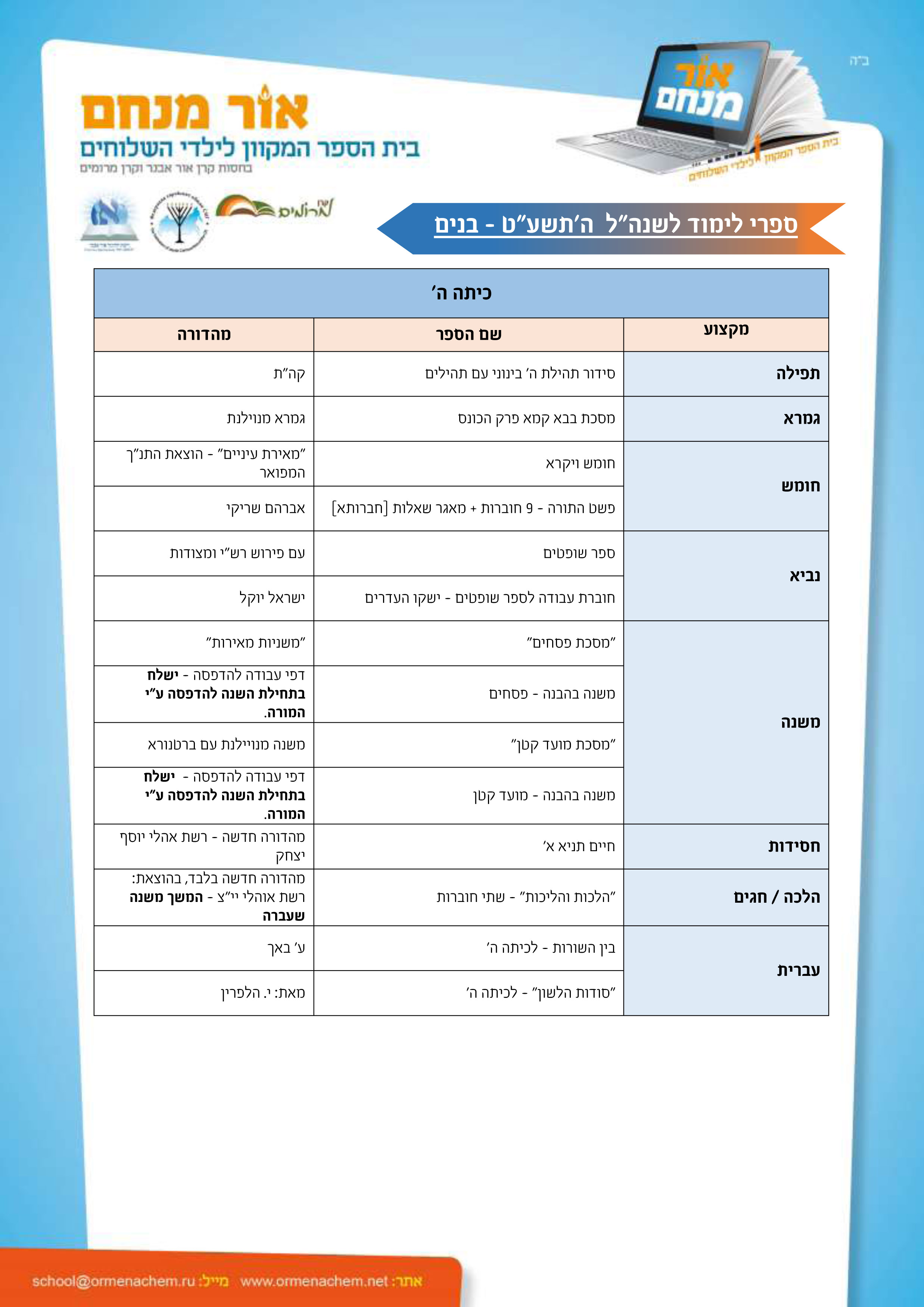 ספרים לשנהל תשע"ט – בנים